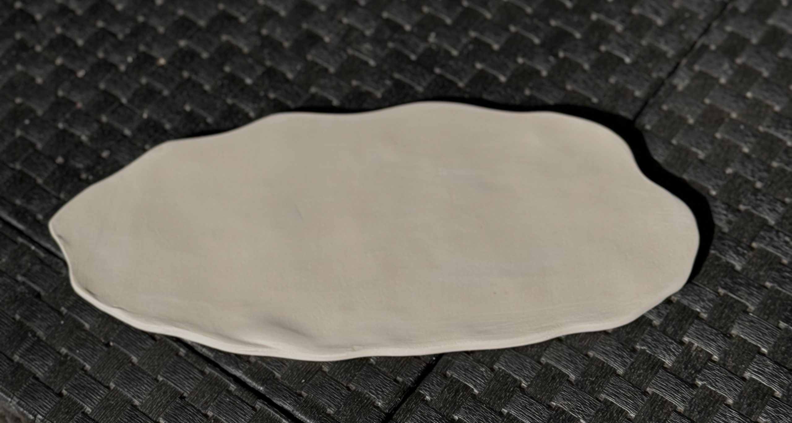 Bandeja irregular de barro blanco, perfecta para combinar con cualquiera de nuestros jarrones.