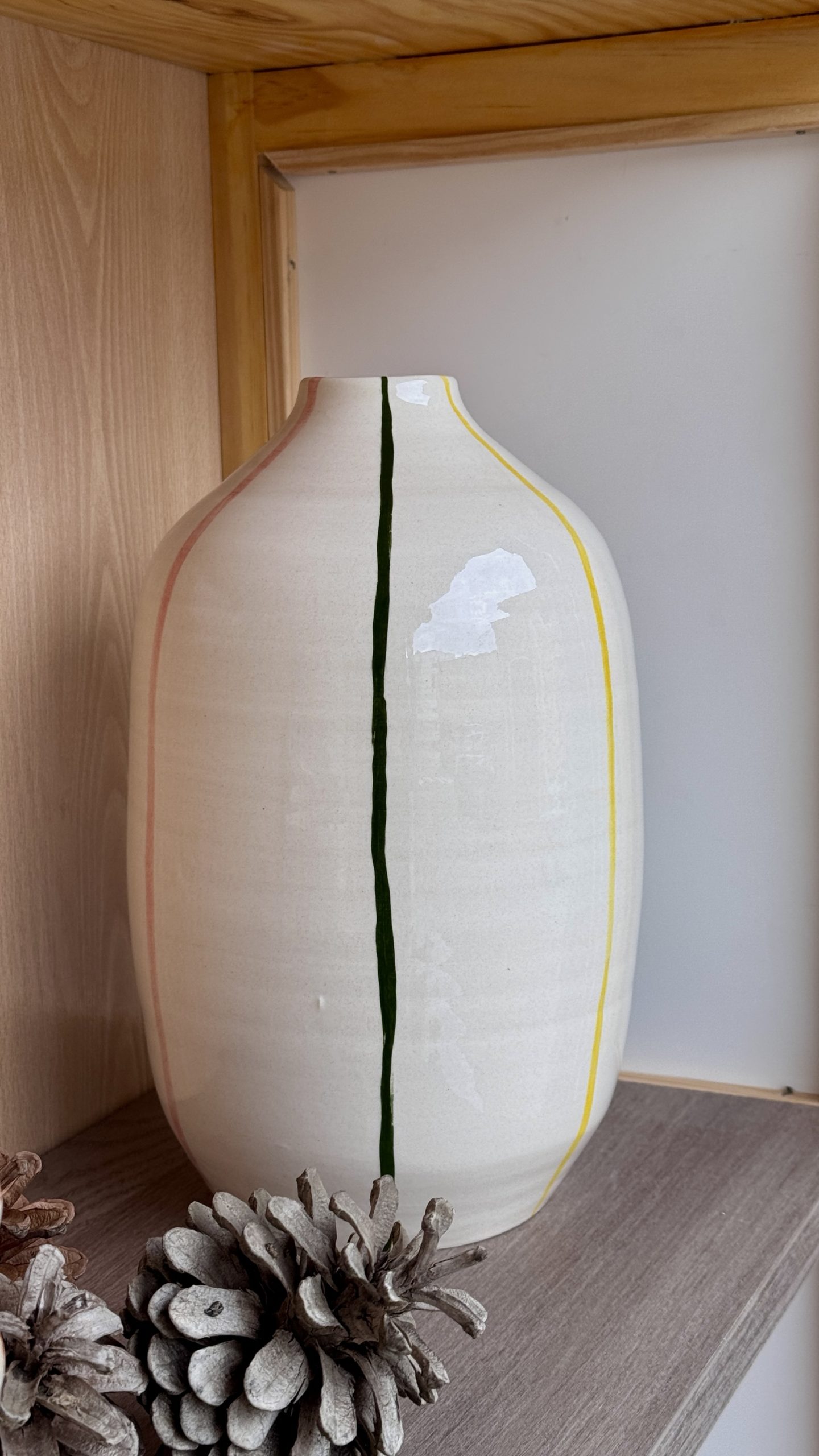Jarrón en barro blanco multicolor (rosa, verde, amarillo)